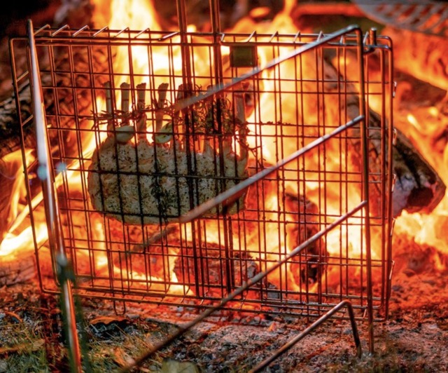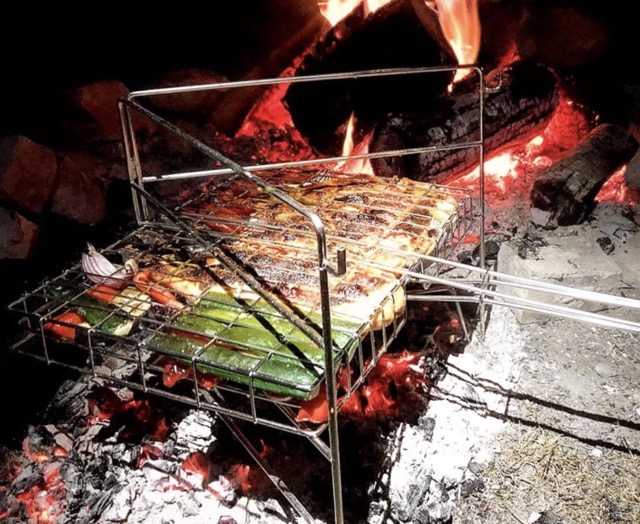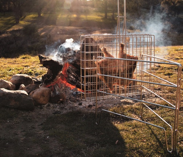 The last and only BBQ you’ll ever need in the bush. No more flipping individual steaks and snags and can cook a complete flat chook and butterflied lamb shoulder with ease.