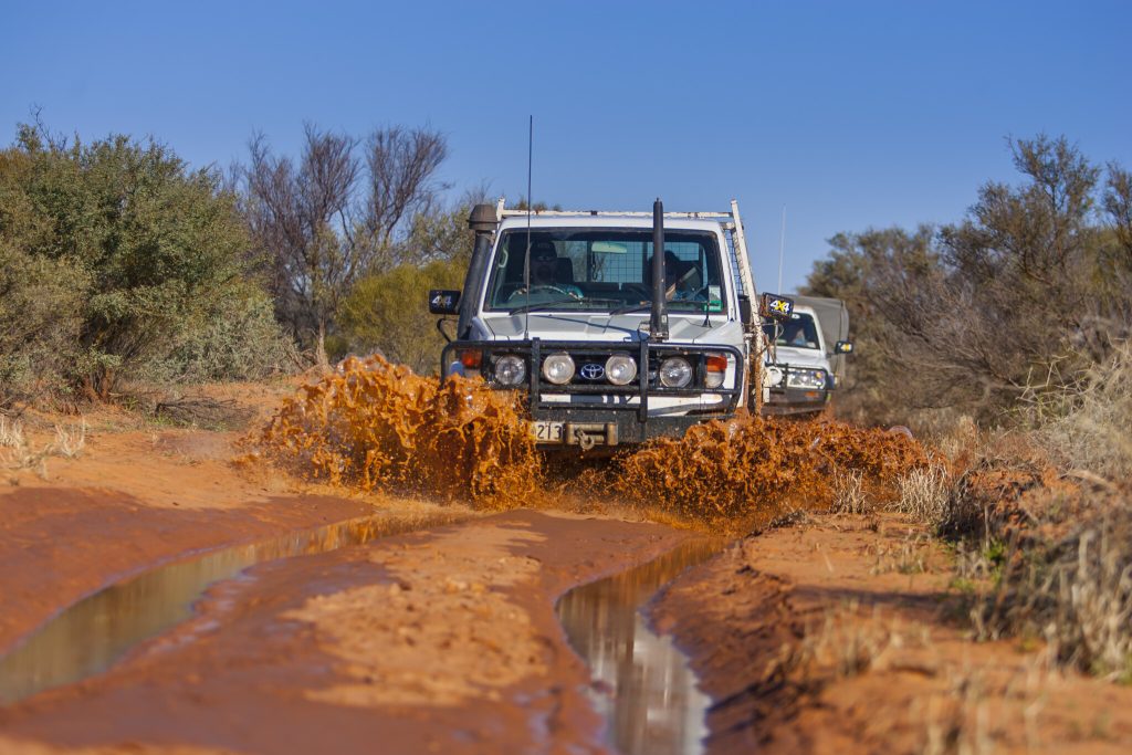 We had plenty of fuel, food, tools and other supplies carried in each of the utes, which were all well-prepared and not overloaded, but with the track being so muddy, everything was getting covered in red mud, making the vehicles look like they had already completed the epic journey from the very start.