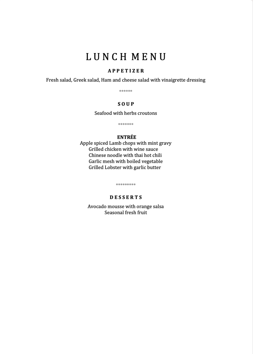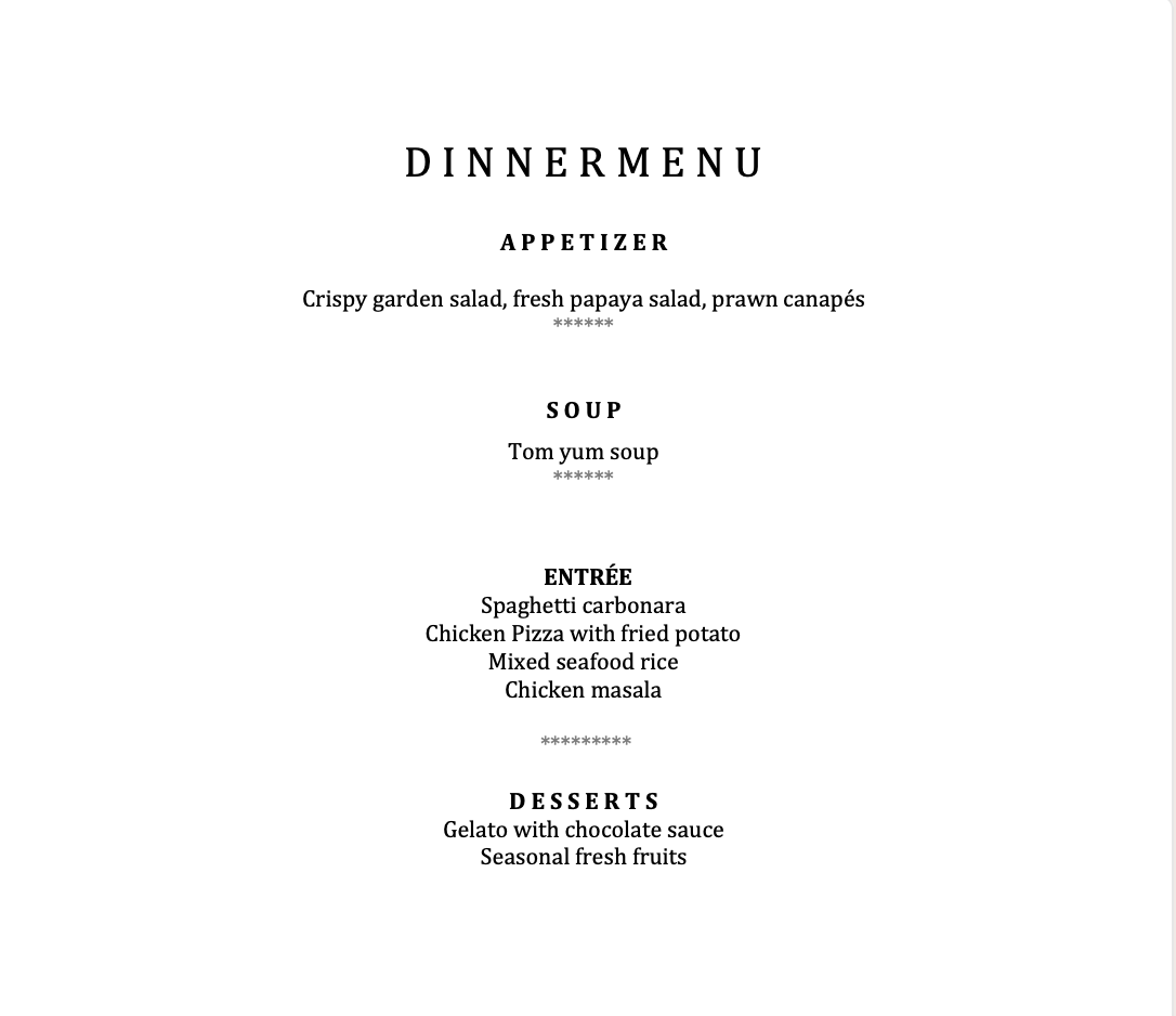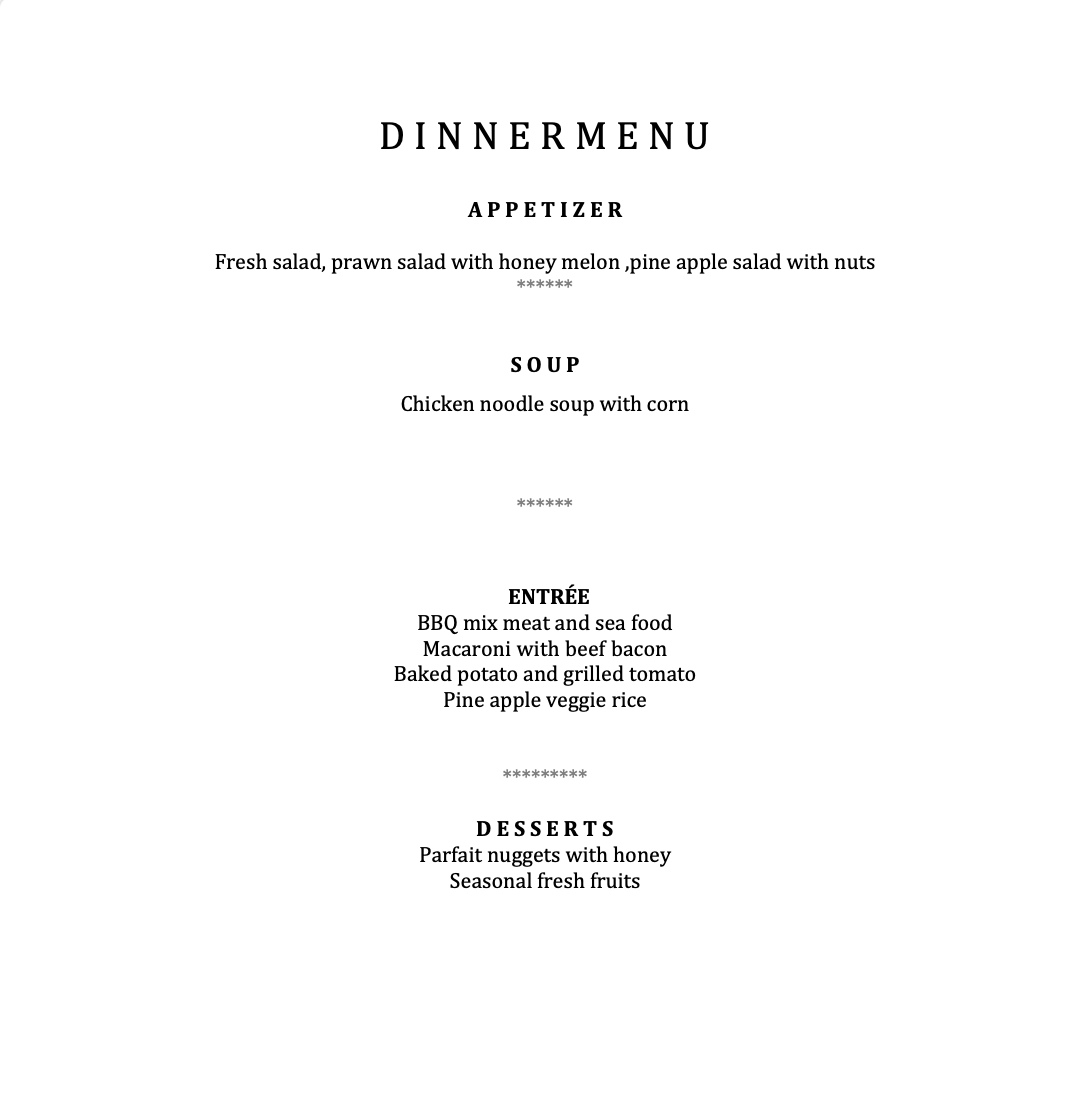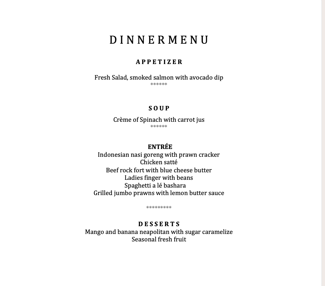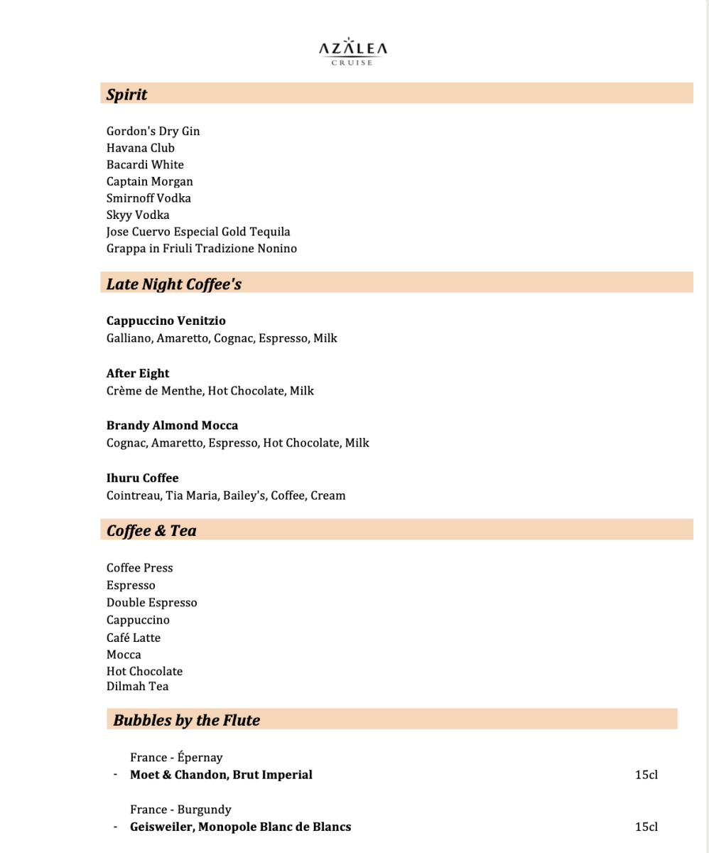 A sample menu and beverage list are available below, with full flexibility to customise your dining experience.