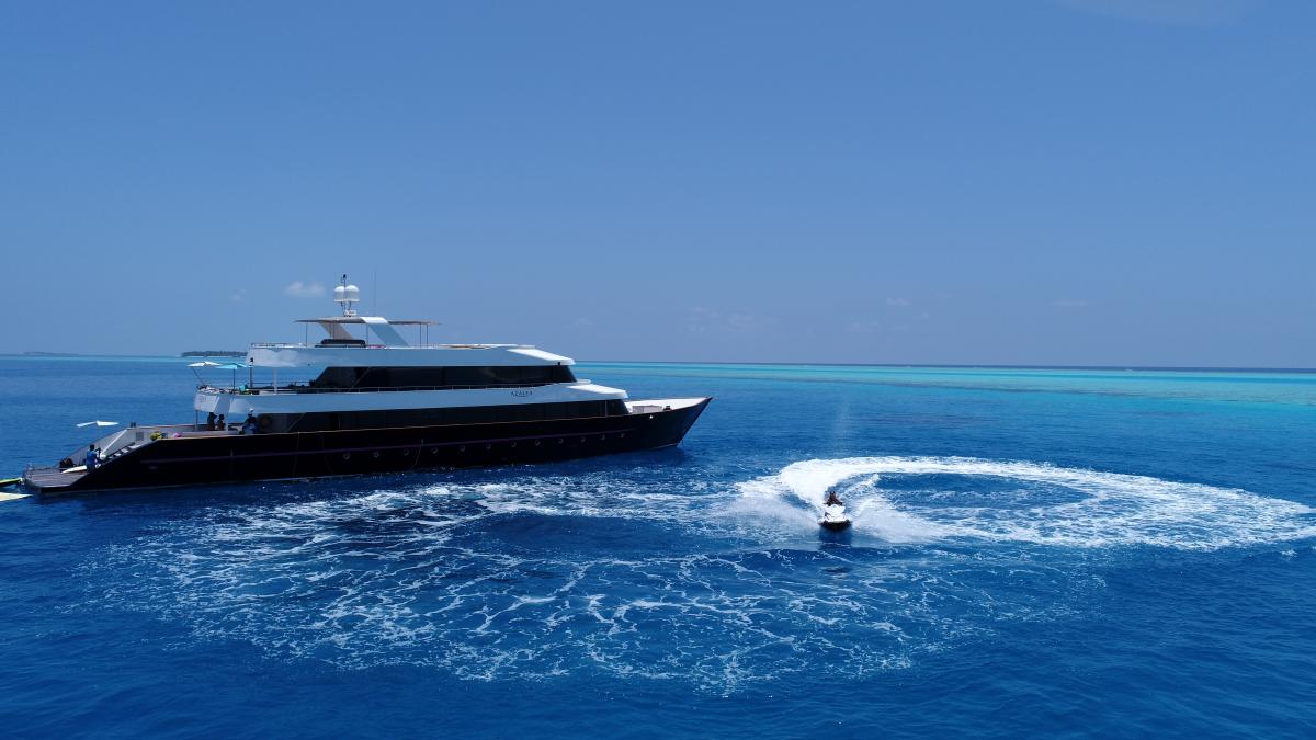When you book a cabin aboard MY Azalea, you’re securing more than just a room — you’re unlocking the ultimate Maldives escape. By day, the ocean is your playground: jet skis, seabobs, paddleboards, snorkelling, fishing, diving, island hopping, and even a giant waterslide — all included, all unlimited. By night, indulge in barefoot luxury with gourmet meals prepared daily by your private chef, a fully stocked bar serving beers, wines, cocktails, and smoothies, and the warm hospitality of our dedicated Maldivian crew.