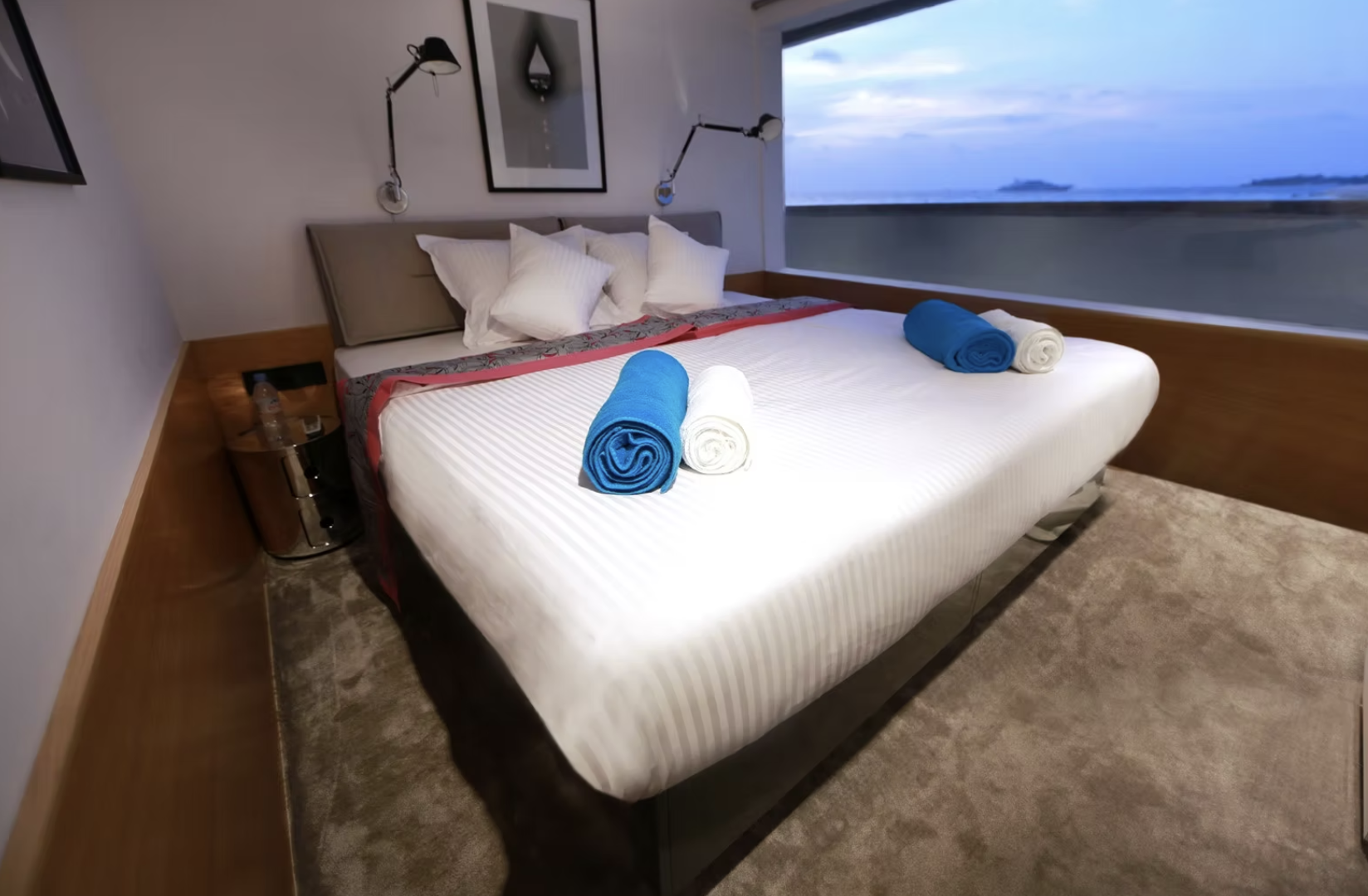 The most exclusive cabin onboard Azalea, the Master Suite sets the standard for luxury at sea. From the moment you step inside, you’re surrounded by sweeping panoramic views of the Indian Ocean and the comfort of a king bed dressed in crisp Egyptian cotton linens.