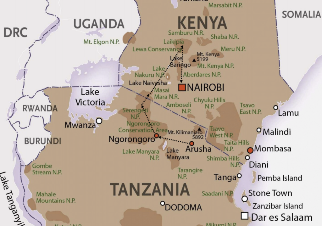Nairobi – Amboseli National Park – Ngorongoro Crater – Serengeti National Park – Masai mara National Park